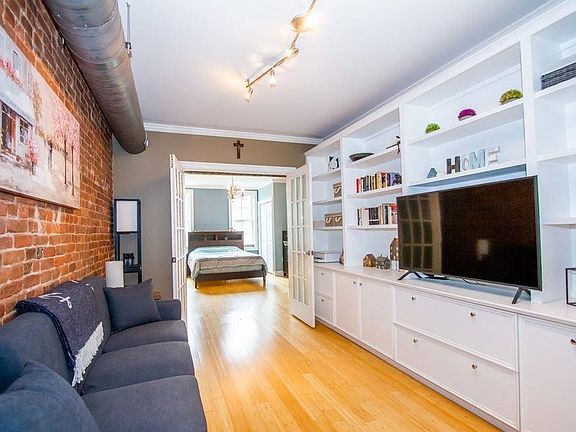 South-facing, renovated 1 bedroom condominium featuring dramatic exposed brick wall, expansive built-in wall unit, crown molding and central air conditioning. Conveniently located near Hamilton Park and all that Downtown Jersey City has to offer. Easy access to Grove Street PATH, grocery stores, restaurants & bars. This home has its own storage unit and shared laundry facilities.