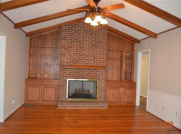 One level living and a great location! Full brick home on level lot with stream behind! This home offers 3BR/2BA, freshly painted interior, new carpet, master bath features a jetted tub, master bedroom has a walk in closet as well as an additional oversized closet, sunken formal living room, formal dining room for those Holiday dinners with family and friends, separate den or office with built in bookcases and fireplace, Cathedral ceiling with beamed ceiling. Huge kitchen with tons of cabinets. Trane Heat pump installed 7/2010. Rock on the rocking chair front porch or enjoy the privacy of your rear sun room and patio.