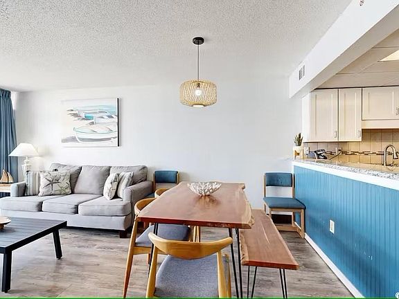 Beautifully renovated two-bedroom and two-bathroom lockout unit at Sand Dunes Resort on the 14th floor. GREAT RENTAL POTENTIAL! Truly a rare opportunity to own a piece of paradise that allows you to rent two separate units or both simultaneously. This condo includes several upgrades including new floors, stainless steel appliances, painted white cabinets, new curtains and all new furniture including a queen side pull out couch in the living room, one bedroom has two full beds and access to a full bathroom and the efficiency bedroom has a queen bed, a pull out sofa for two, a mini refrigerator, microwave, an en suite bathroom and its own balcony to enjoy stunning ocean views. The entire lockout unit can sleep 10 comfortably! There are two full baths each with shower/tub combos and there is a laundry closet with a stackable washer and dryer. Sand Dunes Resort is the perfect get-a-way location with incredible amenities for the whole family including an indoor pool with two hot tubs, outdoor pool with a lazy river, fitness center, arcade, restaurants and a convenient store.