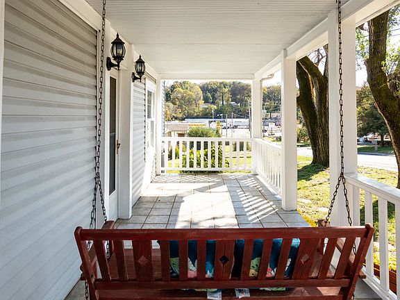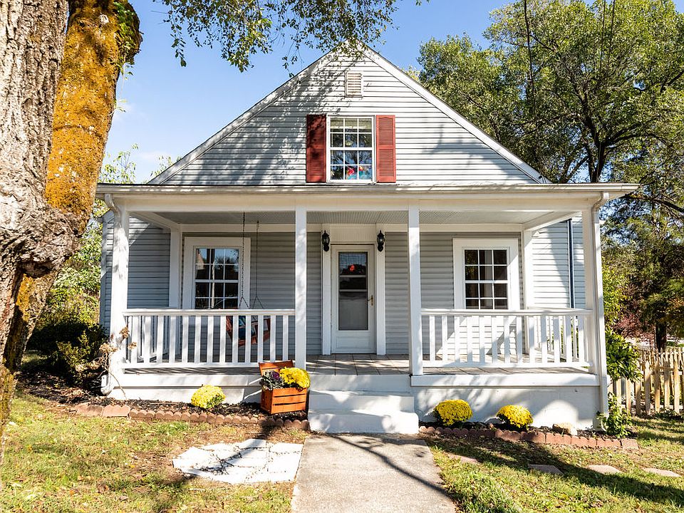 This enchanting home has the welcoming appeal of yesteryear. Relax & unwind on this lovely front porch, or enjoy back-yard privacy on the screened deck. The interior has just been professionally painted, accented by wide baseboards and crown molding. You will appreciate the oak hardwood floors, vinyl replacement windows, plumbing & electric updates, & 1-year old gas furnace. Kitchen appliances are vintage-style, in keeping with the nostalgic charm. The upstairs level is one huge bonus area or a master suite with full bath, complete with tiled shower and antique soaking tub. Unfinished basement offers extra storage. Porch swing does not convey with the sale.
