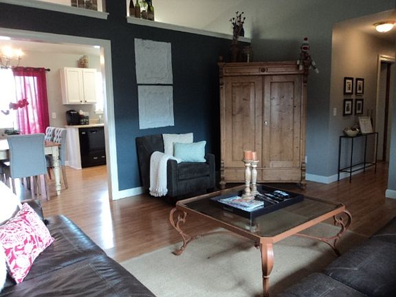 Over 1200 sq. ft., best value in North Park. Beautifully decorated 3 bedroom/2 bathroom, vaulted living room, open kitchen/dining. All appliances included. City utilities. Must see! Excludes shelving in the garage and hot tub.