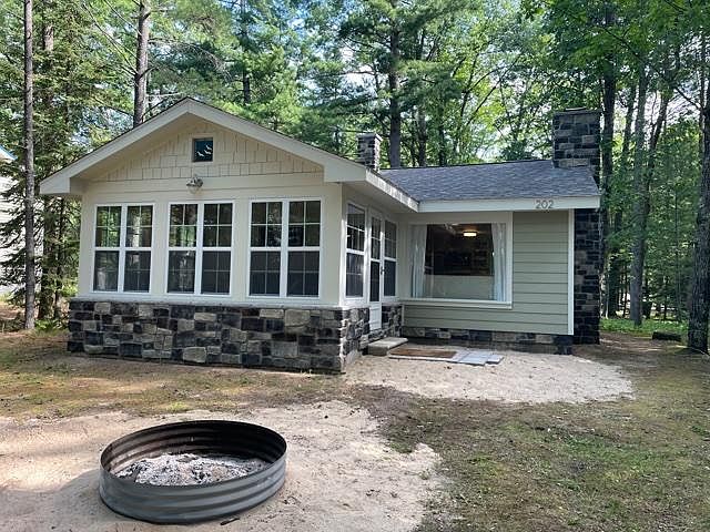 Higgins Lake is only about 400 feet from this beautifully remodeled 3 bedroom home.Enjoy the wooded setting and true ''up north'' character with public lake access a very short walk away. Open living, dining and kitchen areas with gorgeous stone fireplace plus an enclosed porch with vaulted knotty pine ceiling. All new composite siding, windows, exterior stone work, chimney, flooring and more!Great location near the shore of Higgins Lake and close to boat ramps, state park and recreational trails.Offered fully furnished and ready to move in.