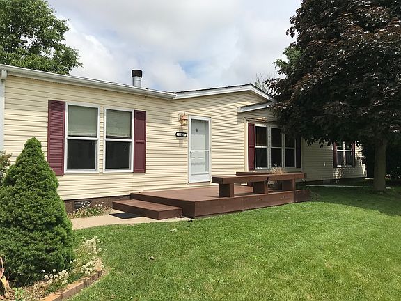 1993 Redman 28 X 60 3 bedroom 2 bath Extra large living room with stone fireplace, dedicated dining room and separate breakfast nook. Huge master bath. As the home is situated on an oversized lot and has farmland behind it, it feels like you are living in the country. No neighbors behind or to the side, and the garage between you and your nearest neighbor makes for a private setting. Large concrete parking area will accommodate 6 plus cars, with room for another car and motorcycle or golf cart in the garage. New appliances (stove and fridge) Recent furnace Working washer/dryer included Recent replacement of several windows to low E. Recent roof on garage and home New flooring in most of house Wood floor in living/dining areas New carpet in bedrooms Fireplace with stone surround and wood mantle (currently has gas log but can revert to wood if desired) Huge covered rear porch Large front porch constructed of plastic lumber that never needs paint or stain with built in bench seating (no splinters). Concrete sidewalk to back yard and back deck Raised garden beds Community maintained playground and concrete walking path adjacent to back yard Large fenced area of back yard for privacy Fully landscaped yard, front and rear. Grape vines, fruit tree, flowering trees. Great country views from private yard. 30 x 24 insulated and heated garage with 1.5 car bays (room for car and motorcycle) built in H/D shelving 30 and 50 amp services for welder and air compressor. Large heated shop/office/she-shed/man-cave. Shop Includes wood stove, desk, work bench, vented gas heater, A/C, large farmhouse sink and cabinet, full size fridge, hot and cold running water, drains to sewer. 50 Amp outlet for range. Ceiling fans, shop lights, outlets, vinyl plank floor, picture window to back yard. Please call Rob at (217) 714-0468 to tour the home.