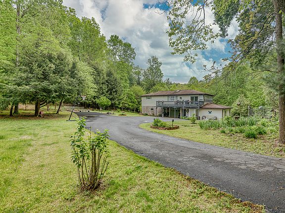 Beautiful raised ranch home that sits on level 1.34 acre lot tucked away in the Rolling Hills community of Erwin. This 3 bed 2 bath home offers a HUGE primary bedroom on the lower level with an en-suite bathroom. You will also find a door that leads to a nice deck at the back of the home with a hot tub to soak and relax in while enjoying the privacy surrounding this updated and very well-maintained home. As you head up the newly installed wooden staircase, to the right, you will find the sunroom/sitting area with tons of natural light ready for your personal touch. Around the corner, you will enter the open kitchen and living room area. The kitchen has a newly installed island with seating, gorgeous quartz counter tops, along with new subway tile backsplash, and new light fixtures. There is another huge deck off the 2nd level of the home overlooking the property where the wildlife love to roam and a good size fenced in area perfect for pets or chicken lovers. Additionally, this home has new paint throughout, a wood burning stove in the drive under garage, and the HVAC was replaced in Aug. 2022. Schedule your showing today! All information contained here is deemed reliable but not guaranteed, Buyer/buyer's agent to verify.