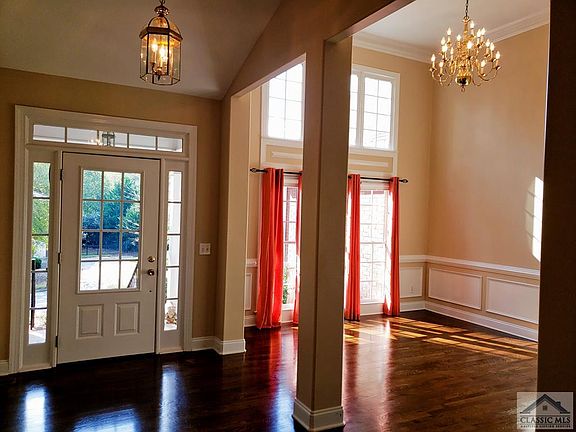 This Beautiful, All Brick 4 Bedroom, 3 Bath Home is located in one of the Finest Neighborhoods on the Eastside of Athens and is less than a Five Minute Drive to the New University of Georgia Veterinary School, Great Restaurants and Shopping. The Elegant Home has a Split Bedroom Plan offering a Large Master Suite with Beautifully Trimmed Trey Ceiling, Spacious Master Bath with Double Vanity, Tile Flooring, Garden Tub and Large Walk in Closet. These are located on one side of the home. Three Bedrooms and Two Additional Baths are on the Other side of the home. High Ceilings are found not only in the Foyer, Formal Dining Room and Great Room but the Office, Kitchen and Breakfast Room as well. The Great Room has a lovely Fireplace with gas logs. There is a Beautiful Curved Glass Sunroom which has its own Mini Split Heat and Air System for Complete Comfort year around, bringing the Beauty of the Outside in. The Kitchen offers Granite Countertops, Tile Flooring, Pantry, New Appliances and adjoins the Breakfast Room. Some upgrades that a new homeowner will enjoy and appreciate are Elegant Hardwood Floors; New Carpet; Dual Fuel Heat Pump System; Continuous Hot Water System for Kitchen and Baths; All new Landscaping; Deck and Fenced Back Yard. Both young and old will enjoy the neighborhood pool in the summer months and there are walking trails around the two lakes located in the heart of the neighborhood to be enjoyed throughout the year. This is a lovely, exceptional home and a "Must See".