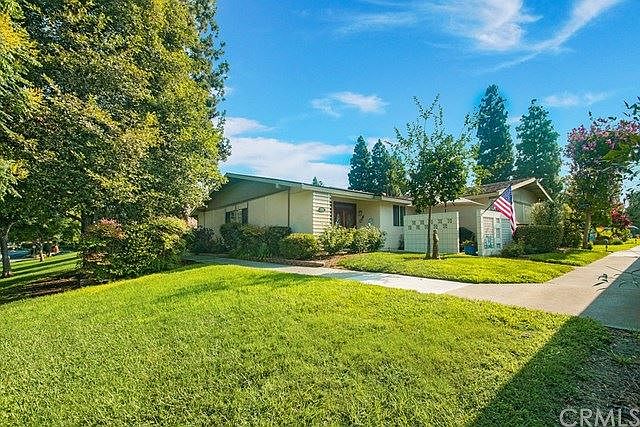 Much sought after Granada Model, End unit, single-level Cottage, sitting way up on a hill with greenbelt and beautiful trees all around. There is a nice private patio in the front. The home has 2 bedrooms and 2 full baths, all remodeled with a tile walk-in showers in one and a shower over the tub in the 2nd., new sinks, and beautiful hardware, tile flooring, with Solar Tubes in each bath for added light. As you enter through the Solid Mahogany double Doors with stunning glass inserts, there is an open design with the living room and dining area opening out into the tiled atrium with a nice shade cover. The designer Kitchen has Granite counters with a large sit up counter, and a wine cooler. All the appliances were updated, and the cabinets are all Real Wood painted White. The flooring is Vinyl wood, easy to care for. There is Crown Molding throughout the Home. Inside stacked Maytag Washer/Dryer. Laguna Woods is a senior Community, the persons residing in the home must be 55 years of age. Investors can purchase at any age, but must rent to a 55 person. There are financial qualifications to purchase in Laguna Woods. Use our Web site to see all about this very active senior Community. The Village has 8 clubhouses, 5 pools, 3 fitness centers, tennis courts, bocce ball courts, table tennis courts, Equestrian center, classes taught by Saddleback college. Over 230 clubs & Organizations to take part in. This is a Gated community, with Security officers .