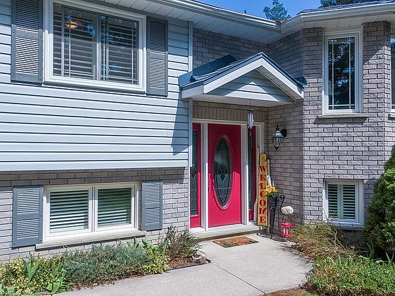 Beautiful 5 bedroom raised bungalow nestled delicately amongst the trees on this private 1.2 acre lot. Recently renovated and meticulously maintained, this home is move-in ready. The open floor plan is highlighted with updated kitchen cabinetry, granite counters, custom maple island, flooring, gas fireplace and California shutters. Sit back in your 4 season sunroom overlooking nature. Venture out into the peaceful oasis with lush landscaped gardens, mature trees and spacious deck. Close to one of the areas most sought after schools, short drive to beaches, premiere ski and golf clubs. Active living at its finest!
