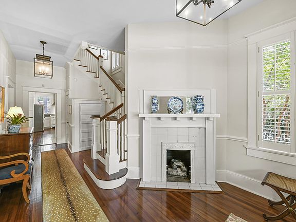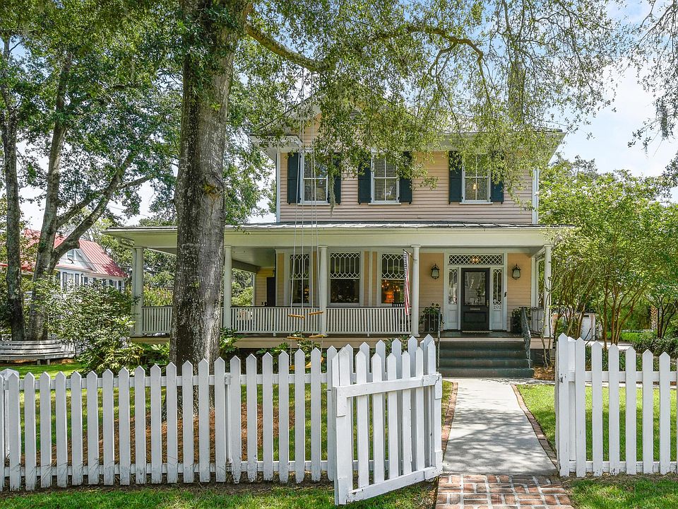Charming Old Village home, with 4 bedrooms and 3.5 baths, is situated on nearly a half-acre corner lot on one of the most picturesque streets in all of the Old Village.This rare find boasts a large gracious wrap around front porch overlooking mature shady trees and beautifully landscaped grounds by acclaimed landscape architect Shelia Wertimer and professional landscape lighting.Enjoy the 30'x15' pool with retractable cover in park-like surroundings.Also extremely unique for the area is the long driveway and garage.Moving into the large light filled interior rooms, you will find many original period details including 6 fireplaces, gorgeous heart of pine floors, impressive 10.5 foot ceilings and classically proportioned rooms with excellent flow tailor made for entertaining. In addition to the gracious living and dining room is a very large den with access to the rear screened porch. Also on the first floor is separate flex space perfect for home office, play room or study. At the top of the classically proportioned stairwell are four large bedrooms with high ceilings and three full baths. The upstairs carefully blends historic period details with modern conveniences including frame-less glass showers and hardwood floors. This is a must see home for its impressive lot size, location, historic nature and utter charm. Close proximity to the beaches, restaurants, The Pitt Street Pharmacy, and downtown Charleston.