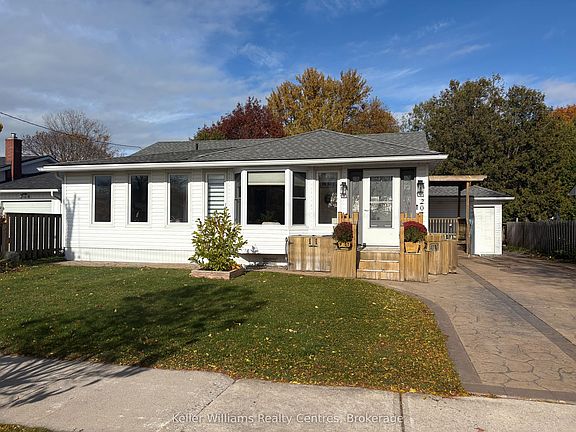 Charming West End Bungalow with Backyard Pool Oasis! Beautifully maintained 2+1 bedroom, 2 bath home in Goderich's desirable West End, just steps from Lake Huron and local schools. Bright, inviting main floor features bamboo floors, cove moulding, and a cozy sunroom with bay window and electric fireplace. Updated galley kitchen with custom white cabinetry, gas stove, and plenty of storage, plus a dining area with patio doors leading to a fully fenced private backyard. Lower level offers a finished rec room with bar and gas fireplace, third bedroom, updated 3pc bath, and extra storage. Enjoy your backyard retreat with a new deck and arbor, saltwater on-ground pool (7' deep end), covered hot tub area, and gas BBQ hook-up. Fully finished pool house includes 2pc bath-perfect for guests or Airbnb potential. Updates: furnace + A/C (2017), roof (2013), HWT owned (2016), 100-amp panel, stamped concrete drive. A must-see home combining indoor comfort with outdoor enjoyment!