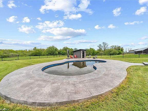 As you enter the tranquil Maple tree-lined driveway, tranquility envelops you. This modern, custom-built home, just four years young, boasts an open-concept design that exudes warmth and welcome. The gourmet kitchen, crafted by Cabico, features rich walnut cabinetry complemented by sleek Quartz countertops, centered around a sprawling 15-foot island - a culinary enthusiast's paradise. Step out onto the covered back porch, where multiple seating areas overlook the fenced backyard, complete with a pristine 18 x 36 in-ground saltwater pool and adjacent fire pit, ideal for evenings spent fireside with loved ones. Inside, the ambiance is further enhanced by engineered hardwood floors, recessed lighting, a soaring 23'6 ceiling in the living room, and a cozy gas fireplace, setting the stage for memorable gatherings. The main floor is anchored by a bright master suite with its own luxurious ensuite and walk-in closet. Ascend to the upper level, where a cathedral loft area with a 13'5 ceiling awaits, along with two additional bedrooms and a well-appointed 4-piece bath.The lower level beckons with expansive entertainment spaces, including a generous family room, a games area with a bar, two more bedrooms, a gym, and another 4-piece bath. Outside, a newly constructed 40 x 60 insulated and heated shop with 14' ceilings offers ample space for the ultimate man cave or woodworking haven. Equestrian enthusiasts will delight in the property's equine amenities, including a 28 x 100' barn with 10 stalls, and a newer 36 x 110 barn boasting 14 stalls, a tack room, washroom, and wash stall, all conveniently connected to a 60 x 110' indoor riding arena. With approximately 30 acres of lush pasture, paddocks, and manicured lawns, plus an additional 40 acres of picturesque trails meandering along the creek, there's ample space for horseback riding, ATV adventures, or leisurely hikes.