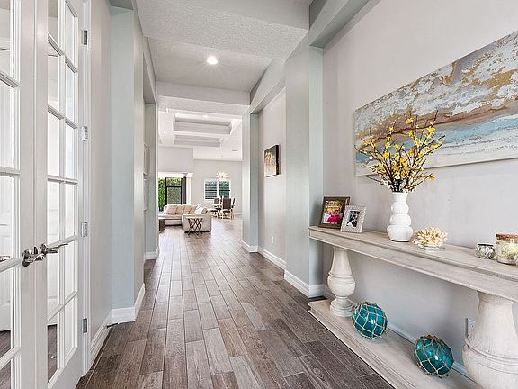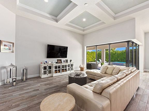 Contact: Agent/owner Val Hughes 407-913-9922 Gated Entry RARE opportunity to own a very contemporary beautifully designed Sonoma Isles “Clubview” Model home. Built in 2017, the 4 bedroom/3 bath “Clubview” is known for its elegant oversized owner’s suite with his and hers expansive custom walk-in closets and an inviting spa style bath. The stunning kitchen is a chef’s dream with double ovens and a large gas range. It opens up to a large living area with soaring coffered ceilings. This makes this home perfect for entertaining and family gatherings. The single-story split plan layout offers plentiful space and includes a office, a oversized laundry/craft room and a 3-car garage. A transition hallway separates bedrooms for the children or guests. Floor plan is exceptional. Zero corner sliding doors offer views of the perfect oasis for South Florida living at its finest. Under the expansive lanai, you will find a just added elaborate professionally designed summer kitchen with a five burner grill and fridge. Open the electric screens and you will find yourself in a tropical oasis. The custom pool offers an oversized sun shelf, champagne spa and light package. The home has been newly painted and nestled on a corner lot, with a turfed in side yard, perfect for pets! The home has been lovingly cared for a show pride in ownership. Here today- gone tomorrow! Furnishings are negotiable.