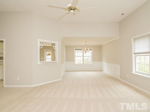 Incredible RANCH home with fiber cement siding & brick accent offers ONE LEVEL LIVING, fresh paint, new carpet and NEW ROOF! Over sized family room with 11 ft. ceiling & gas fireplace. Under cabinet lighting in kitchen, hardwood floors in foyer and separate dining room with wainscoting. Large master bedroom w/WIC, master bath has separate shower and garden tub. Lovely landscaped flat front & back yard. Retractable awning on back patio. Great Apex location close to shopping, dining & all the conveniences.