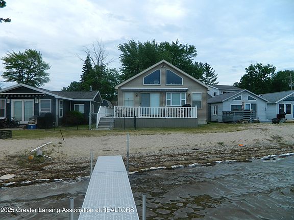 Lake front residence with sought after sandy beach. Updated 3 Bedroom,2 Full Baths with primary ensuite. Lots of great features with finished loft for extra sleeping and storage. Cathedral beamed ceilings in Living Room,Kitchen and Dining area.Granite counter tops in Kitchen and both Bathrooms with newer tile walk- in shower.Excellent views of the lake, your own sandy beach, 90+' Aluminum Dock, Central Air, Generac 20Kwh Generator and Heated two car attached garage. No Seawall or HOA, Boat lifts, Pontoon and Fishing Boat can be purchased separately. Hurry on this one.