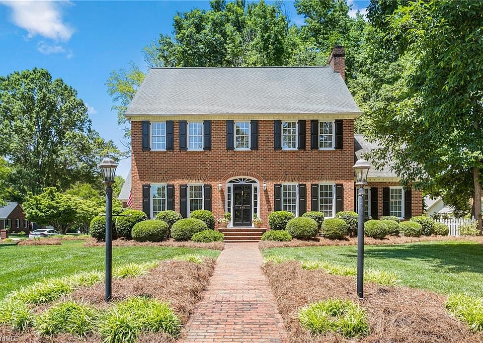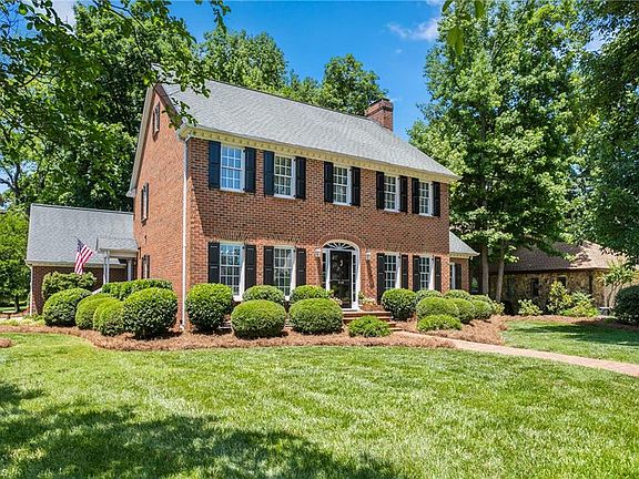 Welcome to YOUR new home in Country Club Forest! This charming, professionally landscaped home has 4 spacious bedrooms & 3.5 bathrooms. You'll have 2 primary bedrooms! One on the main-level, w/ a full bath & gas fireplace and one on the second-level w/ an en-suite bath & 2 walk-in closets; one closet having a vanity. Enjoy 9-ft ceilings on the main level, 8-ft ceilings upstairs, & crown molding throughout. Kitchen has granite countertops, a work island/bar, a desk with bookshelves, & a large breakfast area. French doors in the kitchen & den open to a bricked terrace. Hardwood floors adorn the main level & plush carpet (2021) covers the second level. The kitchen & bathrooms upstairs have beautiful ceramic tile floors (2021) (2018). A versatile bonus room offers potential as a playroom, office, or addt'l living space. Abundant storage & permanent stairs to a large attic. Minutes from Alamance Country Club, Elon University, I-40/85, restaurants, & shopping, this home meets ALL your needs!