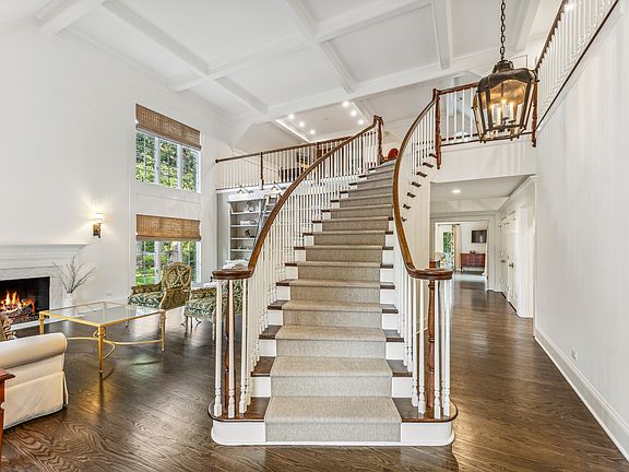 The Burr Ridge Club offers a lifestyle unrivaled by any other community, and this home is its gem. This home is beautifully appointed from top to bottom with light pouring in everywhere on this magnificent estate lot. The two-story living room includes two levels of windows and built-ins with a beautiful library ladder with a spacious moody dining room across the entryway. The stunning chef's kitchen includes an idyllic fireplace and an eat-in breakfast nook looking out to the gorgeous bluestone two-level patio. The adjacent family room includes vaulted ceilings, sliding doors to the patio, one of the home's three beautiful fireplaces and two seating arrangements perfect for conversation. The first floor primary suite is a true oasis with its incredible size, light, and spa-like primary bath. Up the beautiful staircase there is a lovely open loft perfect for an office or lounge. Second floor includes two bedrooms both with marble en-suite bathrooms. There is substantial storage space throughout the home. The lower level has incredible space with the 4th en-suite bedroom and room for theater, exercise room -- whatever your needs require. Three-car garage. Every finish is this home from the Kohler bathrooms to the Holly Hunt lighting will WOW you!