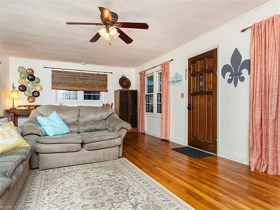 Lovely & charming 2BR+den/1BA home nestled on an expansive & private .52 acre lot. Inviting front porch opens to living room w/hardwood floors, ceiling fans, dining room, updated kitchen w/SS appliances, lots of cabinets and tile floors. Full basement w/ample storage space. Side deck and fire pit for entertaining. Spacious outdoor living w/natural stream and plenty of space for kids' activities, master gardening and/or an urban farm. Walking distance to Osceola Lake. Conveniently located.