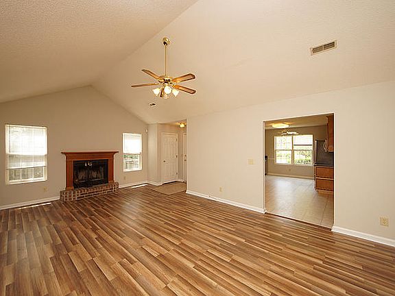 Welcome home to this ranch style home located in Woodland Lakes that is move in ready with new flooring and paint. As you enter the home, you are welcomed into the large, open family room which includes vaulted ceilings, laminate wood flooring, glass sliding doors, wood burning fireplace and a ceiling fan. Just off the family room you will find the kitchen which includes hard surface countertops, a ceiling fan in the eat-in area, a detached island and new stainless appliances. Located just down the hall is the master bedroom with new carpet, cathedral ceilings, a ceiling fan, a walk-in closet & a full bath including a separate shower and garden tub. The home feartures two large additonal spare bedrooms with new carpet and a hall bath with a tub/shower combo . As you exit the family room, you will find a large screen porch which has been re-screened and a large backyard that has a privacy fence and a storage building. Don't forget, the home features a large room above the garage which is perfect for a 4th bedroom or a flex space. There is also a 2-car garage with a garage door opener. The home is convenient to shopping and schools.