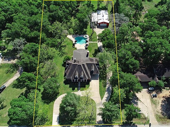This property is what most think of as the real Texas with a home resting on a heavily wooded 1.8-Acre setting with open skies, starry nights and where the heart beats proudly. The home has everything including; POOL, SPA, GAZEBO and 30x50 WORKSHOP. Circular drive leads to step-up covered front Porch. Finely finished with Plantation Shutters, wood floors, lots of crown molding and cased windows. Curved stair in 2-story Foyer. Richly appointed Study. Built-in China cabinet in large Dining Room. Wood-burning brick fireplace and wall of built-in cabinetry in Family Room. Huge Kitchen with commercial grade VIKING appliance package. Gigantic Master & Bath. Fabulous Gameroom and large Bedrooms. Incredible 1,000 sq. ft. covered back Porch with SUMMER KITCHEN and fireplace! Lightly Restricted. LOW TAXES.