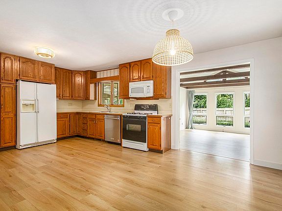 Wood burning fireplaceOversized garageSouthern facing windowsQuiet streetNewer flooring