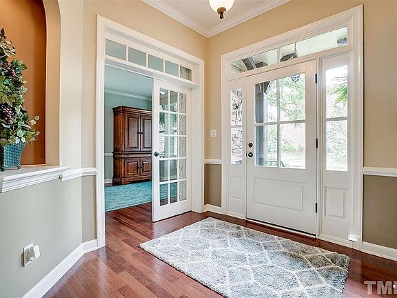 Amazing and private oasis in the convenient and desirable Cary/Apex location. Customized home offers a fantastic opportunity to entertain and relax by your own secluded low maintenance resort like salt water pool with sun tanning deck. Custom upgrades throughout include the Cherry Beach Wood and multi color Slate floor on the main level. Kitchen has Granite island and Silestone counters with high end tile work and 42' Maple cabinets. Main floor Master Suite. New carpet and paint. Simply stunning.