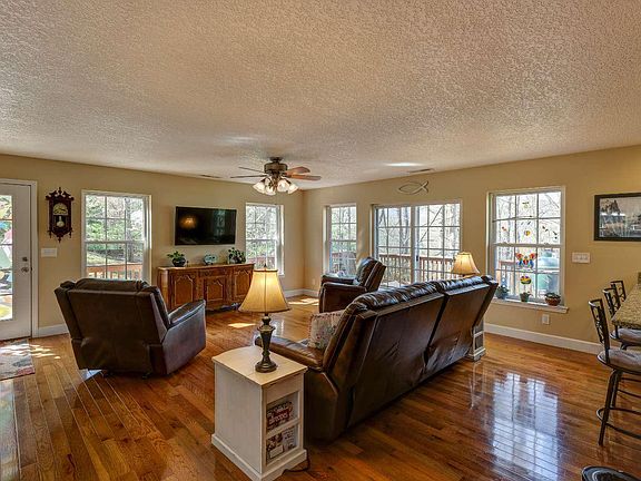 DELIGHTFUL home in picturesque setting with seasonal mountain view! 2 BR, 2 BA & 2 bonus rooms. Main level features a bright, open concept with shimmering wood floors, cozy living area, dining area and fantastic kitchen w/ granite countertops and plentiful cabinet space. 2 BR's & bonus room all on main level along with separate laundry room. Lower level offers spacious living / recreation area with wood burning stove, bonus room for additional sleeping quarters or home office / craft room and lots of storage space. Outside you will find plenty of open deck & covered porch space to enjoy spending time outdoors, gentle yard with plenty of room for gardening. Easy access & great location!