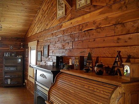 No.01161 RUSTIC CEDAR CABIN WITH VIEWS. A 3 bedroom one bath with a partial basement for a total of 1285 square feet. The interior of the home is a mixture of cedar and drywall with prefinished oak flooring, oak kitchen cabinets, and authentic Ironwork light fixtures. Propane range, refrigerator, microwave, dishwasher and disposal will all remain, as well as a 250 gallon propane tank. The home is heated by a propane fireplace and ventless heaters. The window air unit cools you in the summer while keeping utility bills to a minimum. A detached garage is available for your vehicle and a small storage building for tools. The back deck offers great views. 3.05 acres of wooded property and this nice log cabin for only $89,000.