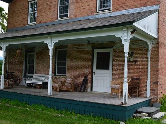 On the edge of Pawlet Village up on a hill along a dead-end road is this beautifully restored c1826 antique brick home. In it's past it has been a meeting house, church and a school and is now a spacious 3 br, 2 ba home offering total privacy and incredible mountain views. Large open kitchen, living/dining rm w/ wood stove, wide plank floors, office or bedroom, glass tiled shower and stone tile floor, front entry hall and laundry closet. Up has landing with family room, 3 br and full tile bath.
