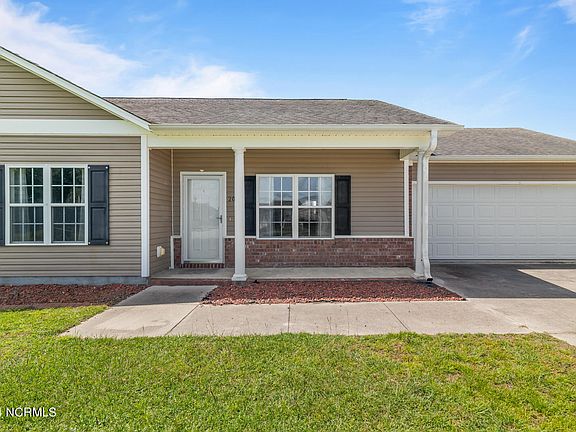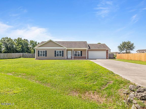 Nestled in the Cul de Sac sits this 3 bed, 2 bath home in the pleasant community of White Oak Plantation of Maysville with NO HOA...This home is full of upgrades you will just love!! The open floor plan features vaulted ceilings in the family room and kitchen. There's a corner fireplace with a Beautiful Brick Chevron pattern, Wood Flooring throughout the main living area, and Gorgeous Cabinets that complement the Marble Countertops, Marble Backsplash and a Huge Apron Farm-Style Sink! The master bedroom features a walk-in closet and a Gorgeous Master Bathroom that includes a beautiful vanity and Walk-in Shower. Through the eat-in kitchen is access to the Large Fenced in Backyard and has an Oversized Patio that would be ideal for relaxing!!