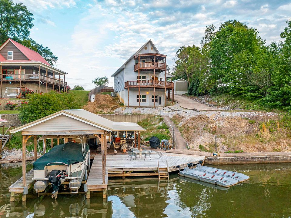 Motivated Seller! Make an offer. Imagine the rent potential covering your mortgage! With panoramic views of Neely Henry Lake in over 4,000 square feet of lake life on the main channel of the Coosa River in Ohatchee, Alabama, enjoy expansive living spaces, beautiful kitchens, and spacious bedrooms on both the main level and in the basement-level apartment, then retreat to your top floor owner’s suite to watch the sun set over the water. The boathouse is perfect for entertaining and offers an additional bedroom, bathroom, and kitchen on 96 feet of water frontage. Secure your jet skis on the included pads attached to the private dock, and use the lift to store your boat away from the elements. With a separate HVAC system installed for each level, a total of 5 bedrooms, 3 bathrooms, 2 laundry rooms, and an abundance of closet and storage space, this home is the perfect opportunity for you to enjoy lakefront living or generate Airbnb/rental income. Call today for your private tour!