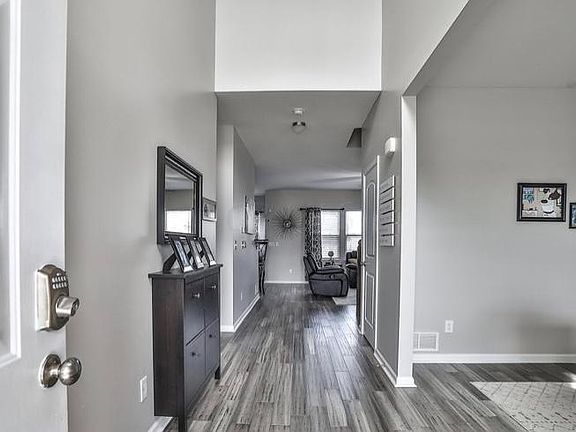Beautiful 2 story home with open floor plan. Upon entry there is a large office area to the right. The great room has a gas fireplace and is open to the kitchen. Kitchen has granite counters and SS appliances. Off the kitchen is a formal dining room. Large 1st floor laundry area located off of the 3 car garage. Upstairs is 5 bedrooms which includes a HUGE master suite with soaking tub and separate shower, dbl sinks, and large WI closet. All bedrooms are good size. Bedroom 5 doesn't have a closet. There are 2 full baths upstairs, half bath on main level and a half bath in the full, finished basement. Basement has a bar area and a large entertainment area. The backyard is fenced in and has a large patio. Agent owned.
