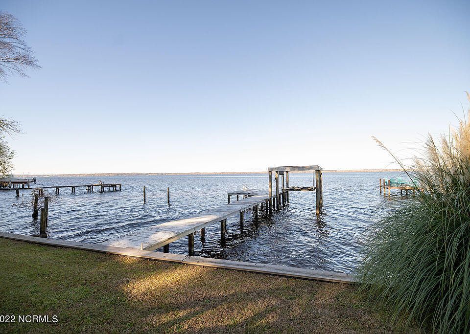 This immaculate waterfront 4-bed, 3.5-bath home features an open concept floor plan, spacious kitchen, and large master suite, with hardwood floors and tile throughout first floor and carpet in bedrooms on second floor. Plenty of storage, both in the living area of the home and in the massive attic, means you'll always have enough room. The house looks out of the beautiful Chowan River, with steps down to your own personal dock. This home, built in 2007, is the epitome of waterfront living.
