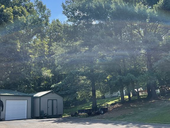 Property is extremally well taken care of. Built in 2000. One owner. Home has 2560sqft. 4 bed 3 bath, living room, den, dining room, laundry room. Custom kitchen cabinets, custom cabinet in living room, custom built entertainment center. Pole barn 30x50 stays, Shed 14 x 32 stays has electricity, see pictures, covered firepit area stays, firepit stays, electric dryer stays. New metal roof aprox 3/4 years old.. AC was serviced 2 years ago and a new motor was installed works great. All electric home. This is a absolutely gorgeous lot and very well taken care of and sellers are very proud of it. 2 lots per survey 1 acre. Garage is full of owners items that DO NOT CONVEY that will be moved, not available for view yet, see pictures BACK TO ACTIVE