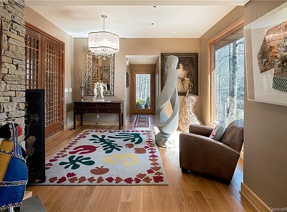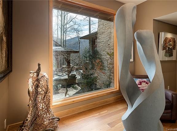 Designed by local architect Andrew Willett & inspired by Frank Lloyd Wright, the home is nestled in a quiet cove overlooking the mountains that form the Blue Ridge Parkway in WNC. Located in beautiful Reems Creek Valley the home is 10 min to the charming town of Weaverville, offers grocery stores, coffee shops, art galleries, wonderful restaurants, etc. 20 min away is the award-winning city of Asheville with its many shops, concerts, breweries & more. As you approach the home, the surrounding forest envelopes you in serene peace. The winding driveway brings you to the home & gardens that are integrated into the woodland landscape that form an organic whole where rocks, trees & plants are naturally found. The home was taken down to the studs in 2007 & completely rebuilt. The home features a gourmet kitchen, incredible master suite, 3 fireplaces & amazing views. It is a horticulture gem (See attachments). This is a must see for those seeking peace & calm.