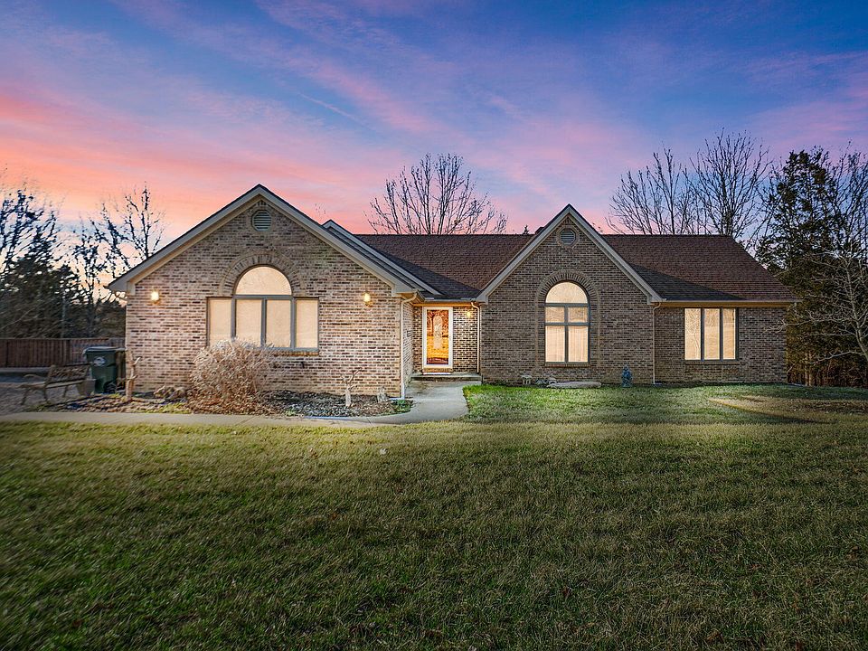 Experience peace and privacy in this all-brick ranch nestled on 7.28 acres of serene surroundings. This home is designed for comfort and functionality. Step into a large working kitchen flooded with natural light and great workspace for the cook. Relax in the inviting family room by the warm fireplace, creating a cozy atmosphere for relaxation and entertainment. The primary suite and two additional guest bedrooms on the main floor all offer ample space. The walkout basement is versatile, with a home office, a fourth bedroom, and a full bathroom. Customize the additional flex space to suit your lifestyle and preferences. Storage is never an issue with the outbuilding that provides ample room for all the toys. Don't miss the opportunity to own this exceptional property that combines comfort, privacy, and functionality.