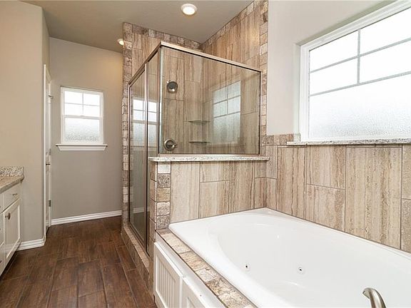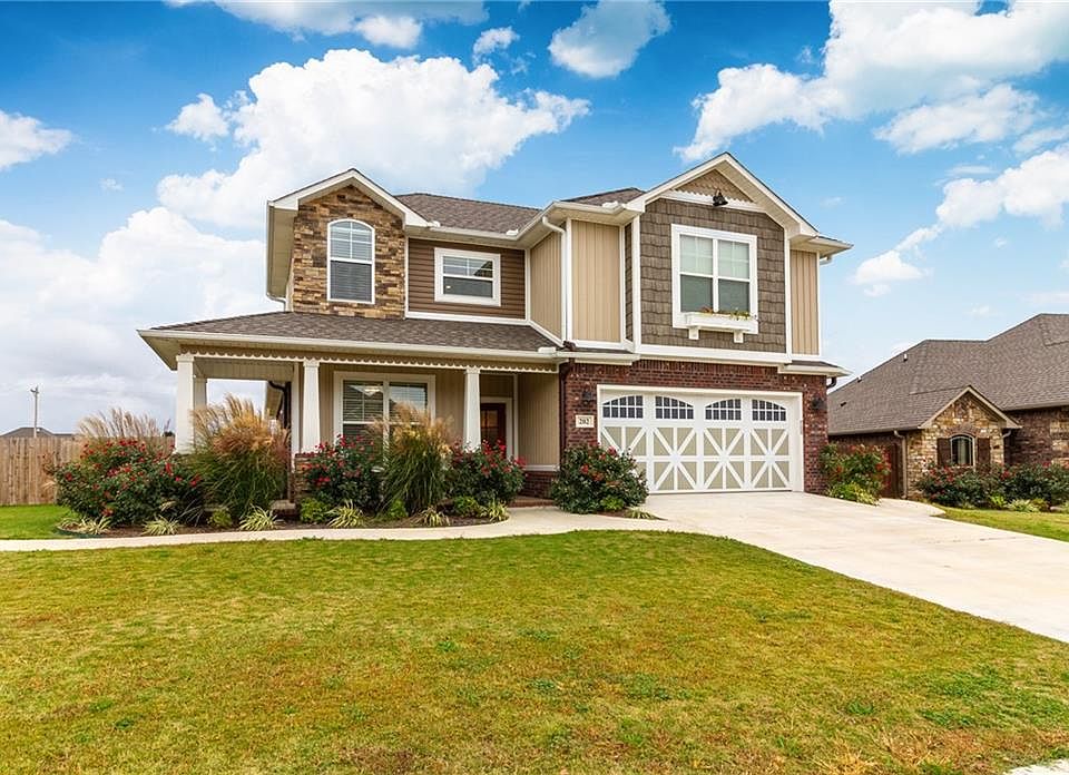 Charming home in a quiet, family-friendly subdivision on a large corner lot with the cute curb appeal! Great location - near a park and the Pea Ridge School. Amenities galore - attic storage, open and split floor plan, large windows letting in an abundance of natural light, and so much more! Master and office/bonus room are downstairs and 3 bedrooms are upstairs. Kitchen features gorgeous granite counters, recessed lighting, large walk-in pantry, and tons of cabinet space. Kitchen opens up to living area featuring elegant crown molding, recessed lighting, and a cozy gas log fireplace. Master suite includes his and her sinks, granite counters, large soaking tub, and spacious walk-in closet. Spacious backyard is the perfect retreat - massive patio perfect for entertaining or relaxing and wood privacy fence all around. Come see your next home!