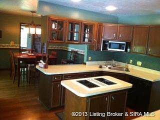 Do you like Privacy and nature but still want to be close to shopping and highways? Lots of trees, gardens, and a Koi pond. Beautiful home with 4 bedrooms, 3 full baths and a half bath. Family room with Huge stone fireplace, great kitchen, and 1st floor master bedroom. Finished walk out lower level with its own kitchen, family room and bedroom. Its like having your own guest house within your house. Lot is your private oasis. Must see to believe. Call today!\n\nInformation Deemed Reliable But Not Guaranteed. Information provided by the Southern Indiana REALTORS® Association, Inc. © 2010 SIRA Multiple Listing Service. All rights reserved. Brokered And Advertised By: Exit Realty One Listing Agent: Brian Bell