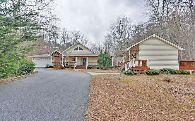 Imagine having your own private park-like setting in the mountains with over 400 ft. of frontage on Fortenberry Cree. The inviting 3BR/2.5BA main house features an island kitchen, living/dining room w/gas-log f/p and huge master suite with an incredible ensuite including an oversized tile shower, jetted tub, double vanity & two walk-in closets. Two guest rooms, guest bath, powder room & laundry round out the main floor. The huge loft area has tons of potential for media room, living area or more. You'll spend most of your time relaxing on the screen porch enjoying the sounds of the creek. The detached guest house is a studio-style suite w/full bath & kitchenette area. There is also an attached 2-car garage and huge paved circular drive with RV parking.