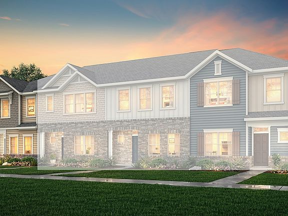The Ginger plan boasts an inviting open-concept layout. A charming porch welcomes you to this beautiful new townhome. Just inside, the foyer flows into a versatile flex space, a spacious great room and a well-appointed kitchen--with a center island and corner pantry. In addition, a casual dining area offers access to a relaxing patio. Upstairs, two generous bedrooms share a full hall bath, while a secluded primary suite features a large walk-in closet and a private bath with dual vanities.