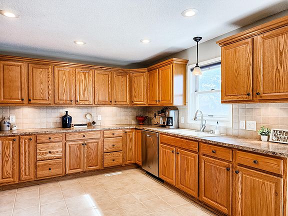 This home offers so much! Open floor plan with big kitchen and large dining area. Living room with bay window and sunken family room with big windows overlooking backyard and nice fireplace. The deck opens to the large fenced backyard with nice landscaping and has a stairway down from the deck. New roof in 2020 and other updates too. See features sheet. Large master suite in the lower level has a cozy fireplace too. There is a 4th bedroom located in the lower level with built-in shelving that could serve as a bedroom or office.