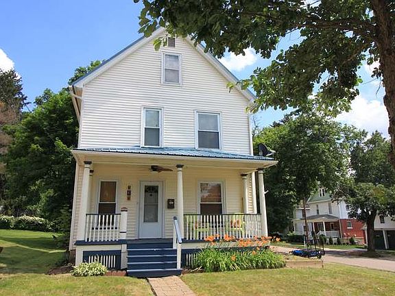 The right place for great beginnings and years to come! This 3 bedroom, 1-1/2 bath home is ready for you to move right in! Sitting on a corner lot, this home offers a low maintenance exterior with vinyl siding and metal roof, a large covered front porch and covered back porch that has built-ins for trash. There is also a back deck for enjoying the outdoors. The main floor has beautiful natural woodwork, some pocket doors and a nice flow with 1st floor laundry and a half bath, very nice eat in kitchen with a bar and a nice size living room. There are 3 bedrooms on the second floor and a full bath. The third floor has been turned into a walk in closet with another room available. See for yourself the family features this home offers. Seller willing to offer a 1000.00 paint credit!