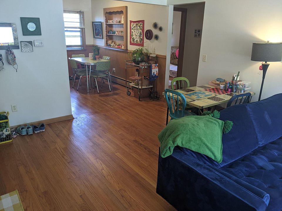 Spacious two-bedroom, one-bath apartment with open kitchen and hardwood floors (carpeting seen in photos has been removed) in well-maintained mid century 4-unit on Madison's celebrated east side. Walk to restaurants, coffee shops, Olbrich Park Beach, Lake Monona and new Pinney Library. Close to bike path, Atwood and Monona business districts. Water, heat, laundry and off-street parking included. Owner pays for water, heat and laundry. Tenant responsible for electric. Pets approved on a case-by-case basis.