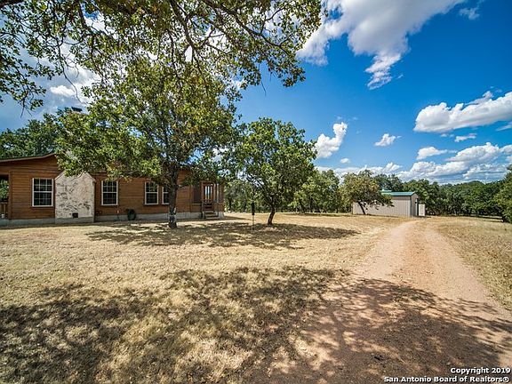 Lovely ranch style home on 5 acres of cedar free land! Enjoy the tranquility of country life in your own private retreat. Home features:covered front porch, screened in back porch, wood burning fireplace, vaulted ceilings in the living room, eat in kitchen, 2 bedrooms, 2 full baths, inside laundry room, water well on site. All this and a 1200 sq ft barn/workshop/garage. All 5 acres encased by a metal & wire fence. Welcome to your new home!