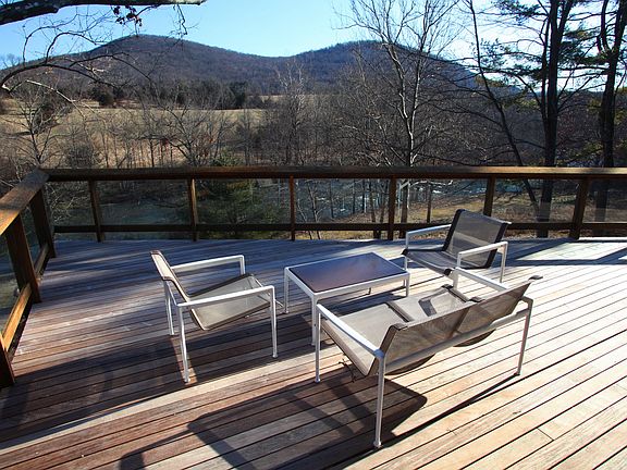 Recently renovated, furnished cottage In Dutchess County, NY is sited on 2.7 acres with dramatic views and direct river access. This sophisticated residence has a large living room with fireplace, a cooks gourmet kitchen with pantry, and a den. There are 2 bedrooms and 3 baths. Each bedroom has its own bath; the master suite has a Jacuzzi-style Ultrabath. Walls of windows and extensive decking allow for mountain and river views. There is central air and radiant heat. Secluded and private, this property is located near the Kent, CT area and is just minutes to Metro North. This is a summer rental, 2 month minimum. Also available as a yearly rental, $2,650 per month plus expenses. No pets.