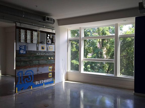 Large, light-filled, modern space with polished concrete floors, high ceilings with open ductwork, industrial design barn door, huge windows, walk in closet, and full laundry. Parking space in secure garage with elevator and storage unit. Beautiful grounds and gardens with a friendly community. Walk to downtown mall and Belmont restaurants. Pets accepted with deposit Water, trash, and recycling included