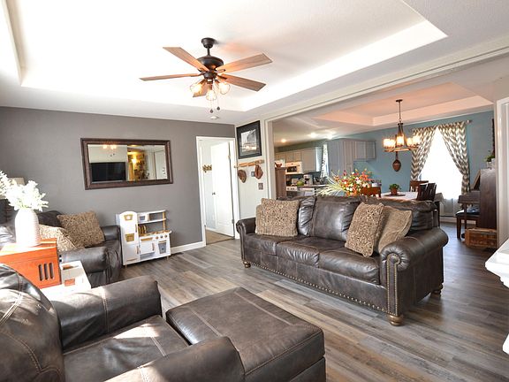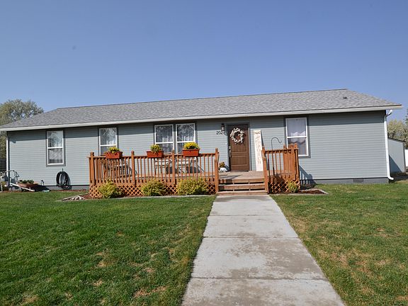 Amazing property has been beautifully remodeled! 4 bedroom, 2 bathroom home on large corner lot within walking distance to the grade school! Kitchen cabinets were updated in 2019 along with new appliances! Luxury vinyl flooring was installed in 2019 throughout the entire house with the exception of the 4 bedrooms, which new carpeting was installed in 2018. Master bathroom was remodeled in 2019 with custom vanity, freestanding tub, shower, luxury vinyl floor, and handicap height toilet! Additional features include New light fixtures, updated guest bathroom, new baseboard trim, and new exterior doors! Outside you will find a shed with electricity, concrete back patio, concrete dog run, sandbox, and camper pad! House was painted in 2017. Front deck is great for relaxing or entertaining!