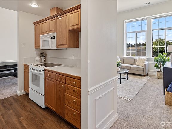 Immaculate West-facing, second floor Garden Court Condo unit available! This spacious two-bedroom unit has vaulted ceilings and extra large windows that showcase Cle Elum’s beautiful sunset colors. Large primary bedroom with en-suite and walk-in closet with room to spare. Nice sized kitchen with all appliances included. Great layout and nice flow between the living room and dining room. Newer washer & dryer and hot water heater. Good in-unit storage, including additional 6’x6’ storage unit on 2nd floor. Covered parking space close to main entry included! Great location with easy freeway access. Common area features reading and game area, mail center, elevator and secured access!