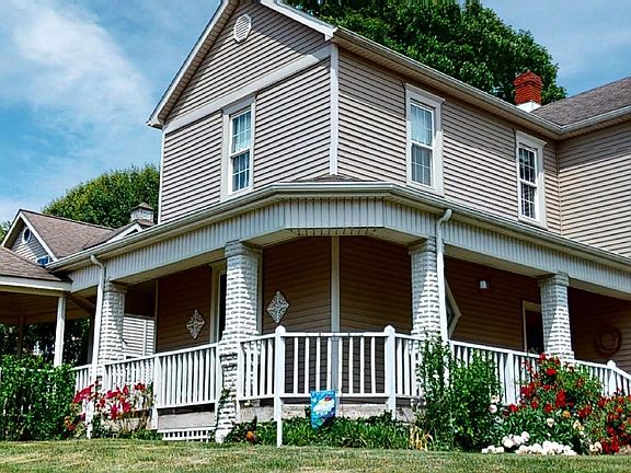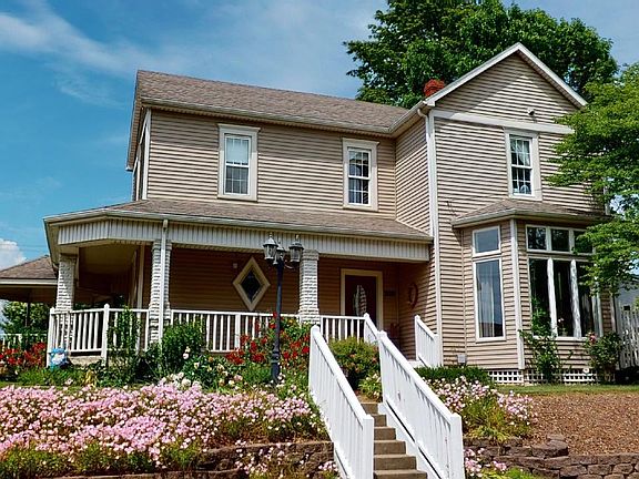 Curb appeal to the max.....describes this 3 bedroom, 2 bath historic home. As you pull up to this property, you will immediately enjoy the beautiful flowers, wrap around porch, gazebo and spacious back patio. Plenty of room for a garden and play space too. Step inside this charming home to find a grand foyer with an amazing decorative open staircase The inviting living room, with tons of natural light, offers a unique diamond window and an outstanding built-in bookcase. The kitchen features beautiful custom built cabinets and a spacious bar area. There is a half bath just off of the kitchen area. You are sure to enjoy a tasty meal in the relaxing dining room with tons of windows that invite the outside world in. Venture up the open staircase to find a landing area with one bedroom on one end and 2 additional bedrooms plus a full bath on the other end. The furnace and A/C are brand new! This property also offers two additional buildings. One was used as a "she shed" or art studio and the other could be a workshop.