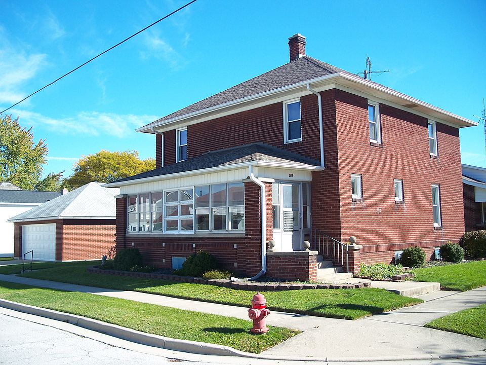 Bring Back The Charm! This 1 ½ story home features a covered front porch, three or four bedrooms, 1 ½ baths, huge living room ventless gas fireplace, kitchen, optional dining room, laundry room, basement and a detached two car garage. The basement includes a finished rec-room and two utility/storage rooms. The home is heated by gas forced air furnace and cooled with central air conditioning. The exterior of the home and garage is brick with an asphalt shingle roof.