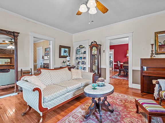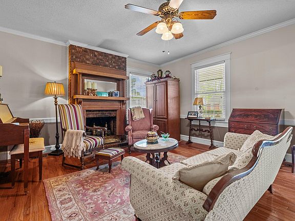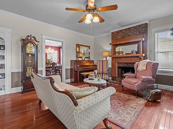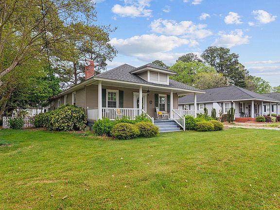 Lovely 3 bedroom 1 1/2 bath home with lots of charm and updates. This home features lots of hardwoods, lovely kitchen with granite, large dining room and separate laundry. Home has a nice living room and master suite with large walk in shower. Closed in garage with heater makes a great bonus room. Exterior features include 2-12x12 storage buildings and carport. Large patio with hot tub and landscaped yard with fish pond. New HVAC as of 12/2023. Home has updated windows, large rocking chair front porch and concrete drive. Walking distant to shopping and park.