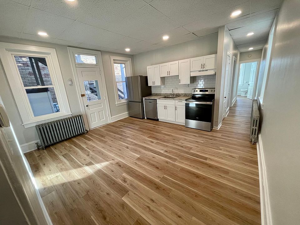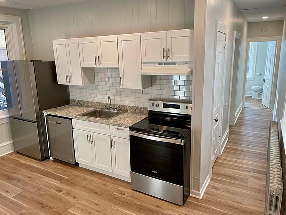 Welcome to Downtown Orwigsburg at 202 East Market Street! This newly renovated FIRST FLOOR unit has one bedroom, one bathroom with tub/shower. This apartment is charming with it's high ceilings and circa 1900 ornamental tin ceiling and walls in the bedroom. This unit boast lots of widows that radiate natural light. The kitchen pops with stainless appliances that include a french door refrigerator and the convenience of a dishwasher. The addition of in unit laundry hook-ups and off-street parking make this unit a must have. This unit includes: HEAT, WATER, SEWER and TRASH. Small dogs allowed with additional Pet Fee, NO SMOKING. Background and Credit Checks Required. Must earn 3x monthly rent to qualify. Pet Fee